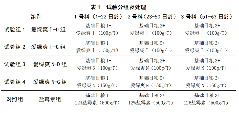 本试验分组情况、、、、相应添加剂及药物的添加方案详见表1。。