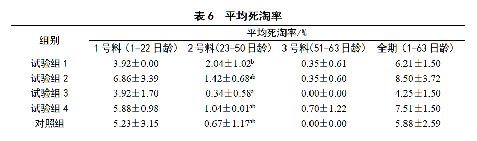 1、、、试验组2(尊龙时凯爽Ⅰ、、添加量150g/T)在各阶段的提高日采食量方面的效果较为突出;试验组3(尊龙时凯爽N、、、添加量100g/T)在各阶段的其他效果(提高日增重、、改善料肉比与死淘率等方面)较为突出;